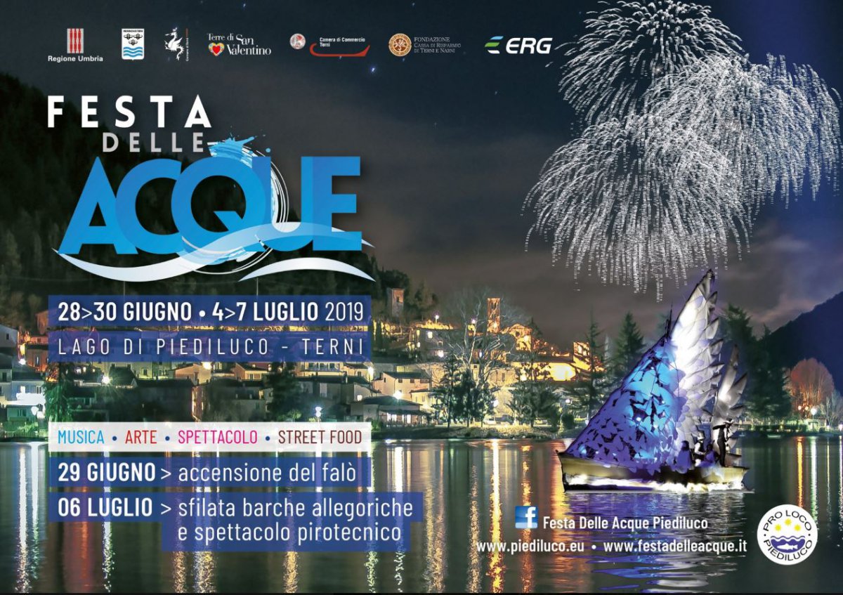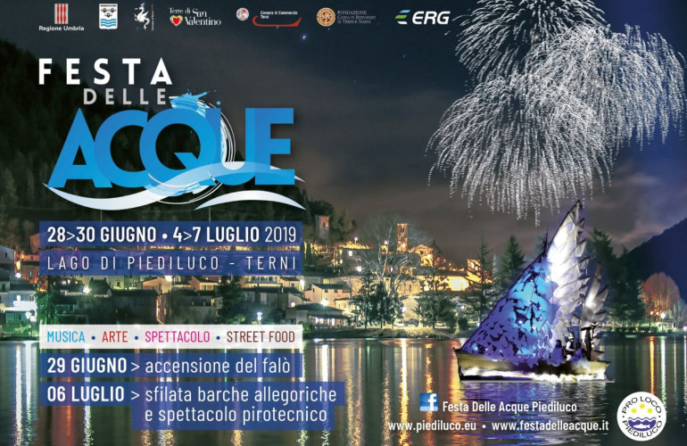 Una vera kermesse, una vera festa popolare e raffinata all'insieme, quella che è entrata nel vivo lo scorso 29 giugno 2019, quando lungo la strada piedilucana una serie di personaggi medievali hanno trasformato l'atmosfera del borgo in ‘Quadri Storici’ di vita cittadina. Subito dopo è stato acceso il tradizionale Falò del Solstizio, che ha segnato l’inizio ufficiale della Festa delle Acque di Piediluco.